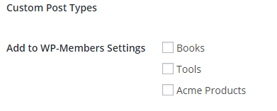For each CPT, there will be a checkbox option to add it to the WP-Members settings.  Any CPTs selected will be added to the settings for the main Content settings.  Select the CPTs to add and save your changes.