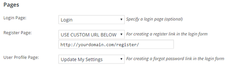 Identifies the location of a specific login page.  The basic install does not make use of this setting, but it may be desired for certain customizations (its location can be retrieved with the API function wpmem_login_url()).  Some of the plugin’s extensions utilize this setting, most specifically the Advanced Options extension.  [See Page Shortcodes]