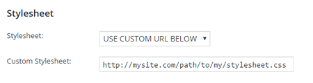 Keep in mind, these are pre-made and may or may not work well with your current theme.  In order to best integrate with your theme, it is highly recommended that you develop a custom stylesheet.  If a custom stylesheet is used, you can identify its location by selecting “use custom URL below” in the stylesheet selector upon which the Custom Stylesheet input field will display.