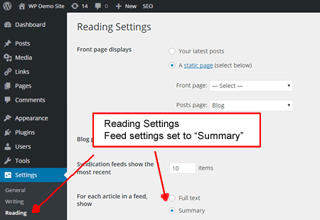 WordPress® は既定だと「全文を表示」に設定された状態でインストールされます。この場合、保護されたコンテンツが RSS フィードで閲覧できるようになってしまいます。
